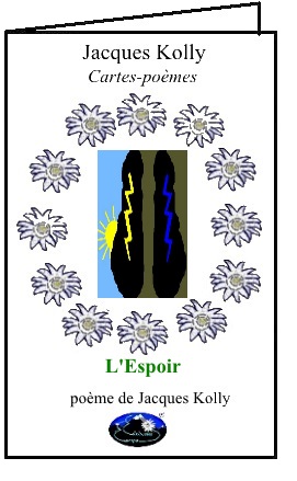 © 2023-2025 Edelweiss Europa.® Ce site est un site d’information et ne vend pas sur Internet ni par tout autre moyen. En sus de la première série de cartes visibles sur le diaporama, et de la série de sept livrets de poèmes, non visibles ici, seule la première de couverture du livret Les Fleurs, en dernière vue dans le diaporama est montrée ici. Pour tout contact avec l'auteur, Jacques Kolly, pour une étroite et fructueuse collaboration, communiquez votre message par l 'adresse Cette adresse e-mail est protégée contre les robots spammeurs. Vous devez activer le JavaScript pour la visualiser. tout simplement !